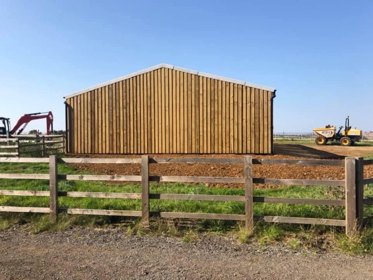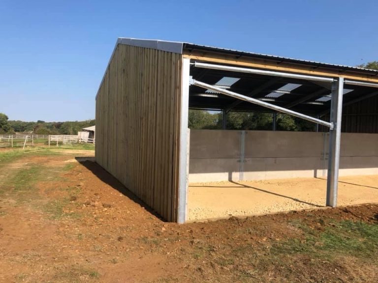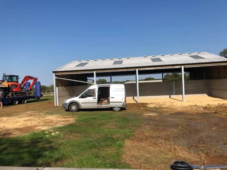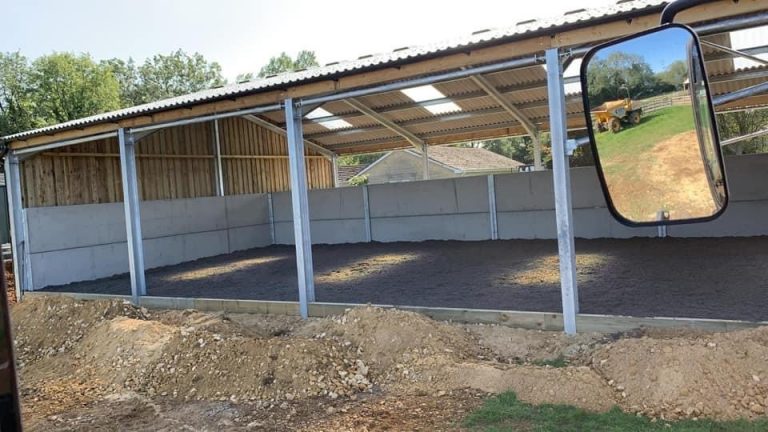 The project began with a stable base, a barn base and some fencing. This was followed by the construction of a car parking area, access roads, a 60x30m outdoor arena, a 80x60m grass arena and a bespoke steel framed barn designed for the horses as an alternative to stables.